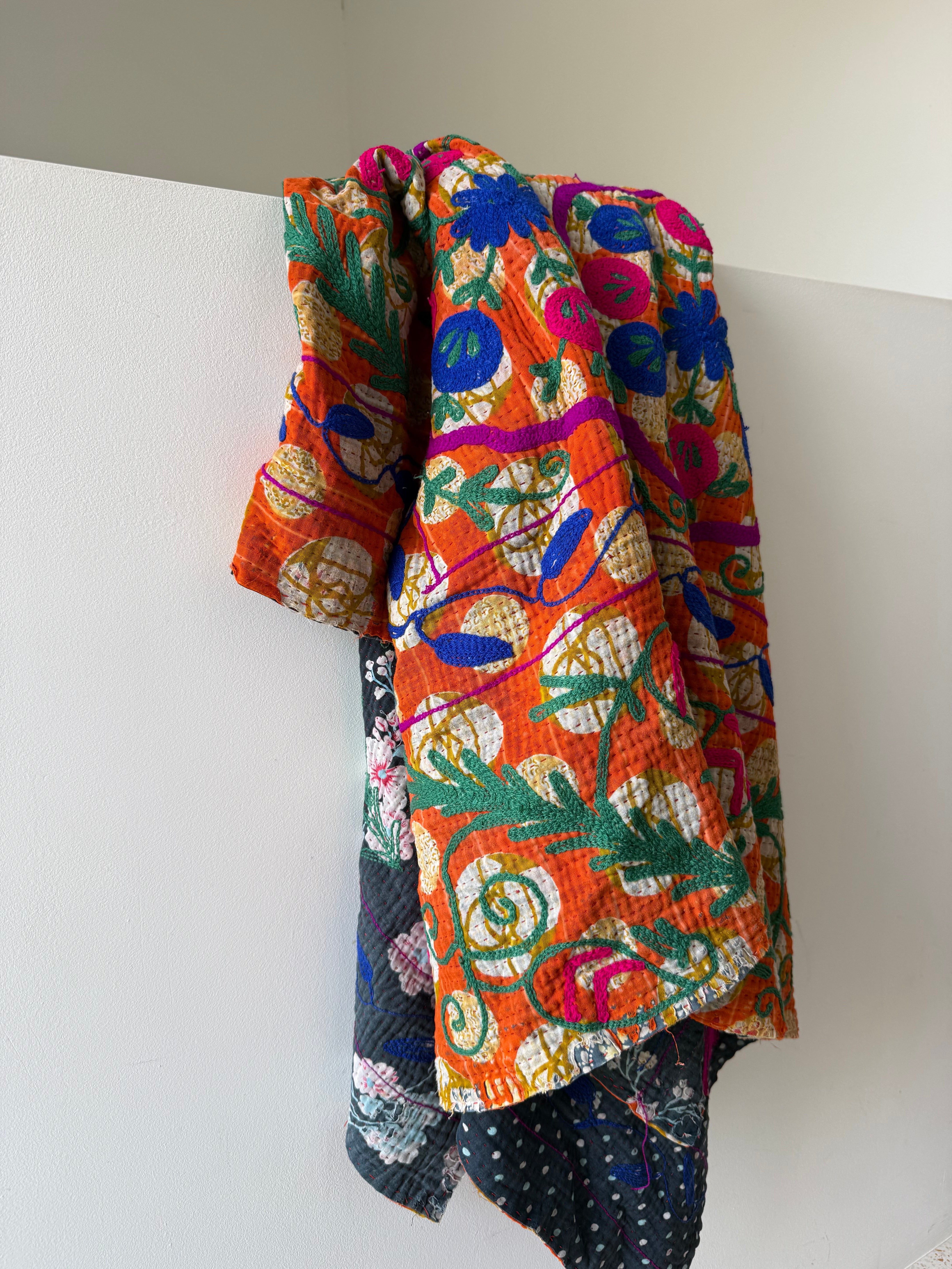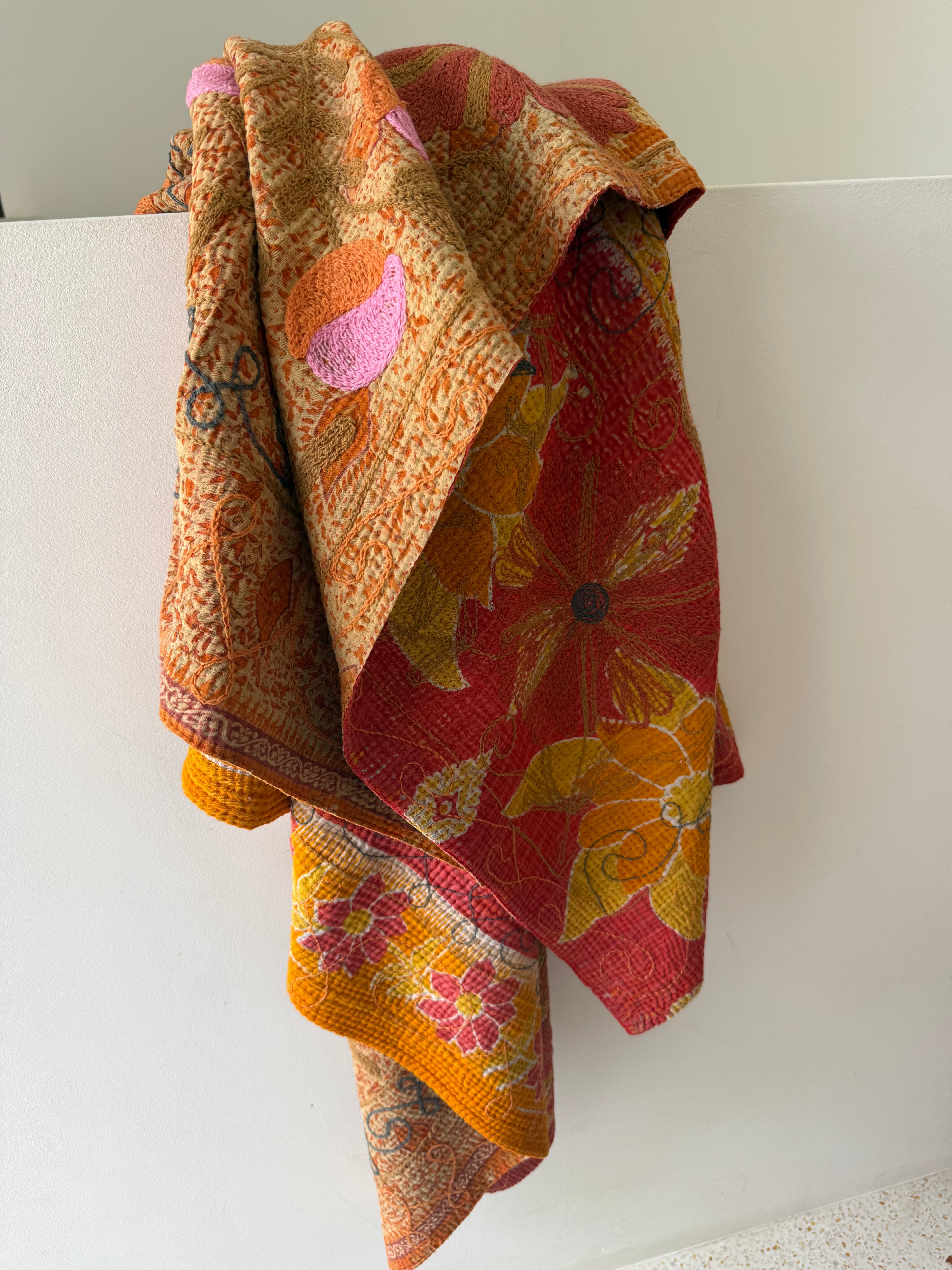 Each one is unique, on a Kantha base cloth using the most amazing colours and stitch work - they are soft and have a gorgeous heirloom feel - all measurements are approximate -